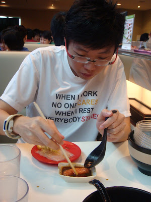 After a series of vigorous exercise, of course we should pamper ourselves with a well deserved lunch ... so we headed down to Sakae Sushi ...